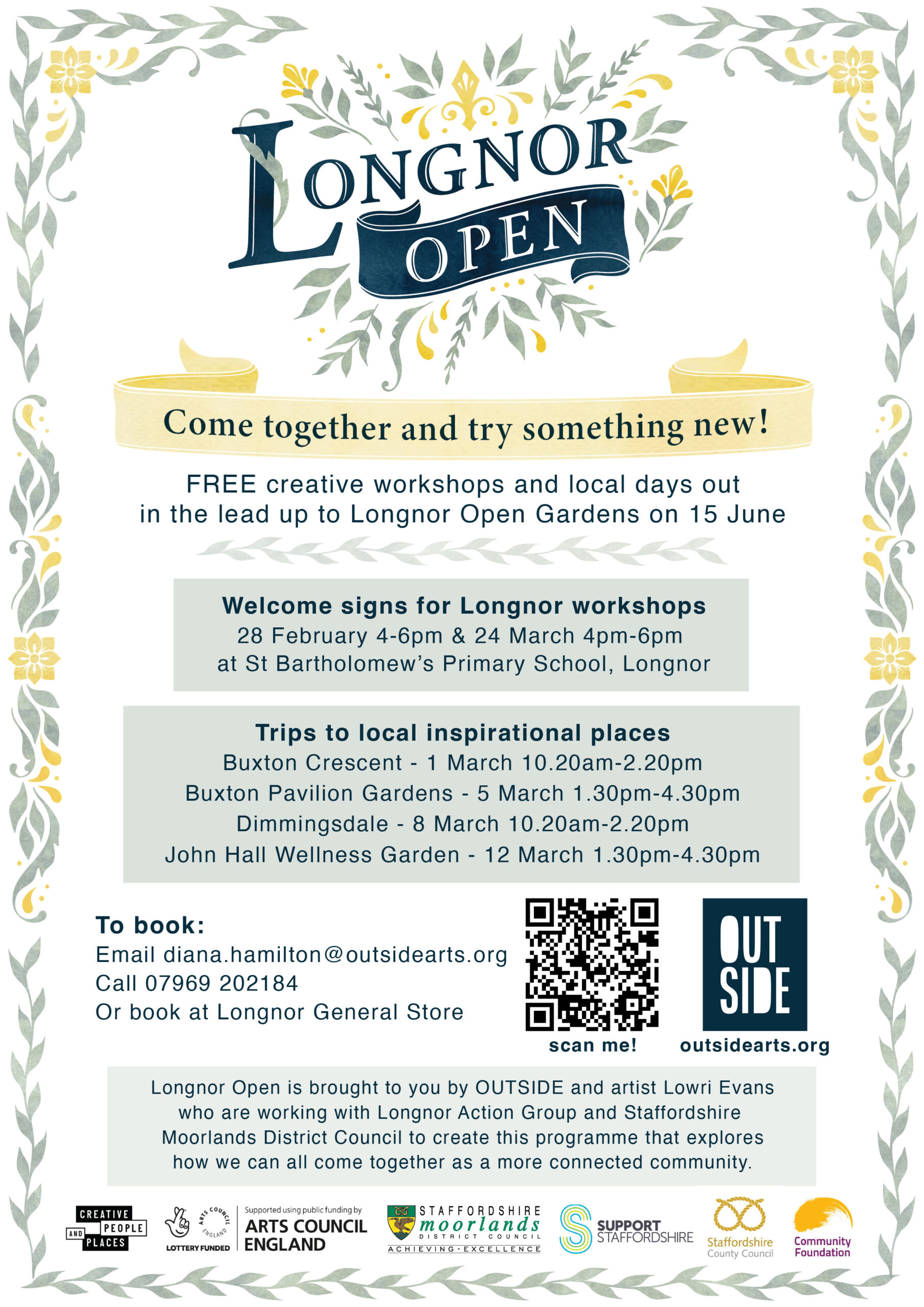 In the lead up to Longnor Open Gardens on 15 June we are hosting some FREE creative workshops and local days out as part of Longnor Open, a new project for the village to come together and try something new!